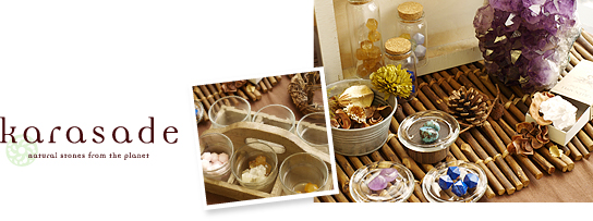 | karasade에서는 「귀여운」 ,「예쁜」것을 원하는 고객님께 생일별 행운의 컬러, 좋아하는 의미와 디자인으로 나만의 오리지널 천연석 액세서리를 만들어드립니다.또한, 액세서리뿐만 아니라 느긋하게 집에서 보내는 시간을 부드럽게 비춰주는 천연석 램프나, 피곤한 몸을 풀어주는 목욕용 솔트 및 아로마 캔들 등 일상생활에서 사용하실 수 있는 아이템도 갖추고 있습니다. |