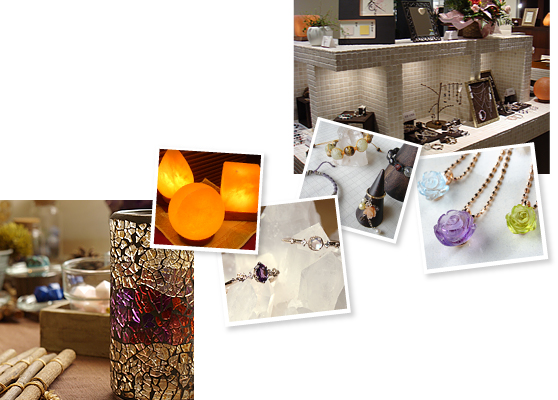 | 몇 억년에 걸쳐 결정이 만들어 진 아름다운 돌은 같은 돌이라도 하나 하나가 전혀 다른 표정을 보여줍니다.각각의 장점을 최대한으로 끌어낸 아이템을 아늑한 공간 속에서 느긋하게 골라보세요. |