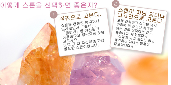 마음을 담은 스톤도 해를 거듭하거나 생활환경이 변하여 몸에 지니지 않게 되거나 그 밖에 새로이 끌리는 스톤이 나타날 경우가 있습니다. 그래도 사용하지 않게 되거나 바램이 이루어졌거나 스톤이 망가져서 역할이 끝났다고 생각하고 쓰레기통에 버리는 것은 조금 슬프죠. 이왕이면 다음과 같은 방법으로 함께해왔던 스톤들을 편안히 쉬게 한 뒤에 새로운 기분으로 「지금의 자신」에게 어울리는 스톤을 가져보는 것은 어떤가요?