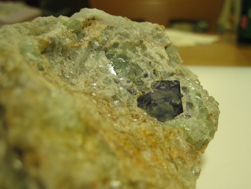 欲をいうならもうちょっと色が濃いといいなという感じ。たぶん表面にでていたせいで少し薄くなったんだろう。私たちは石英の中に隠れているほたる石を、それを割って取り出すことにした。
