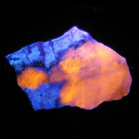 オレンジ、グリーンなど多彩な色を持っているこの石は、蛍石と違いどれもほぼ確実に蛍光する。