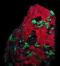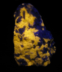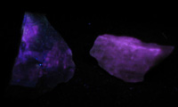 左が蛍光灯で右がミネラライト(鉱物専門のブラックライト:商品名)で撮影したもの。