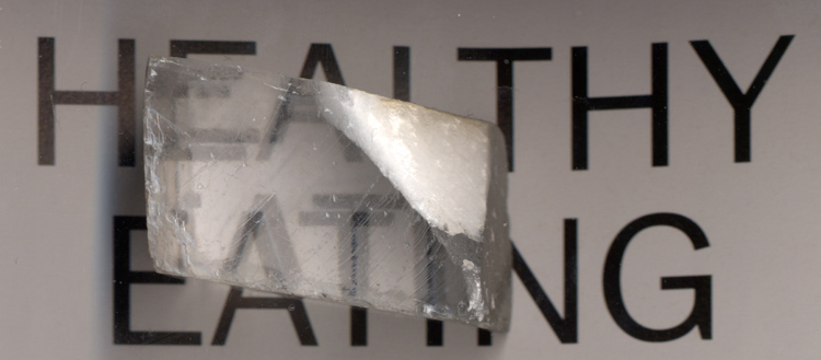 ひとつは副屈折(ふくくっせつ)という性質。何か模様の描いてある紙の上に方解石を置くと、その絵が二重にだぶって見える現象。これも変わった性質だから透明な方解石を持っている人は試してみてほしい。