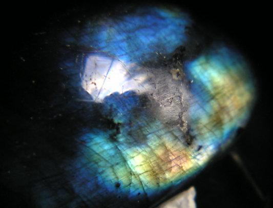 笑っちゃうんだけど、カミさんが持っているラブラドライトの原石は磨いてある部分にはそれが出てないんだ。磨いてないところにはちゃんと出ていて、「おもしろいから買った」なんてカミさんはいっているけど、ちょっと間違っているような気がする。