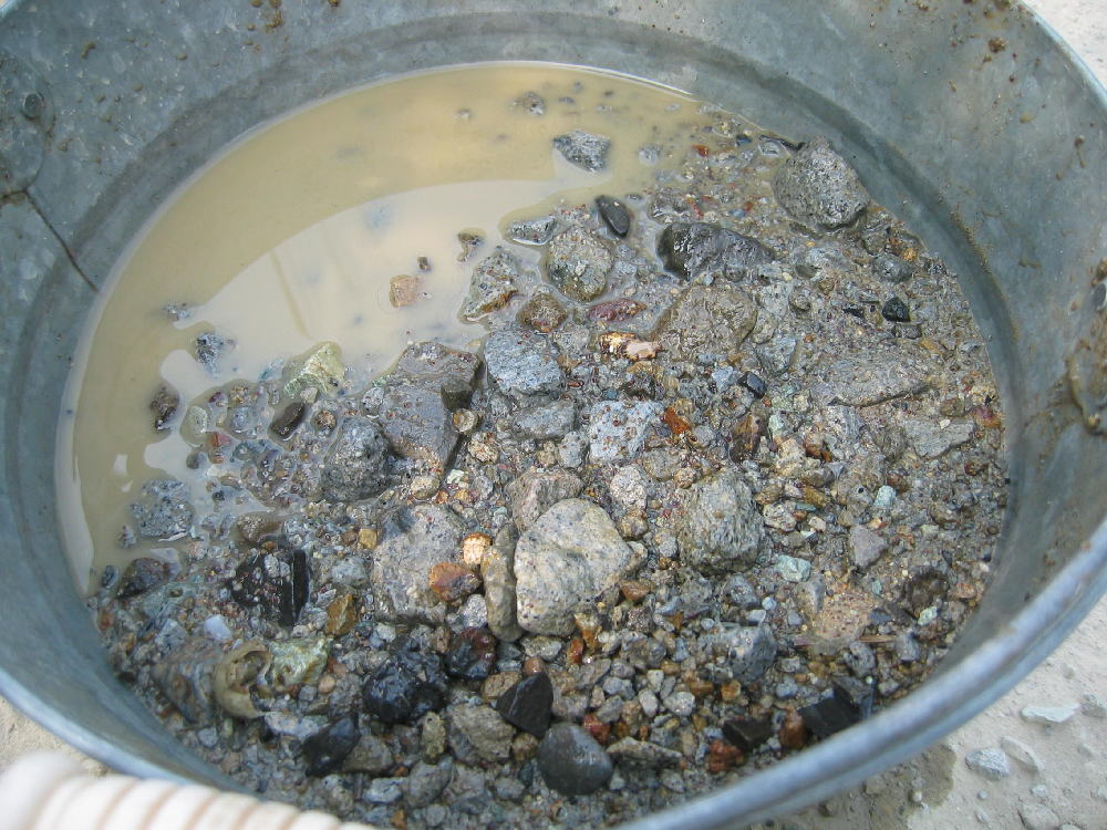 近鉄線がすぐ近くを走る住宅地のそば。自動車がバンバン走る県道脇に流れる小さな川底の砂の中に含まれている。