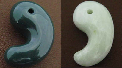 ところで、一般的に勾玉はヒスイで作られろものと思われがちだ。しかし、初期の勾玉は濃い緑色をした碧玉(へきぎょく:ジャスパー)で作られていたことを知っている人はあまり多くない。
