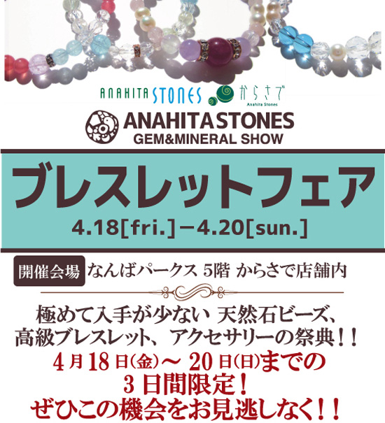 なんばパークス店でブレスレットフェア開催!4月18日~20日