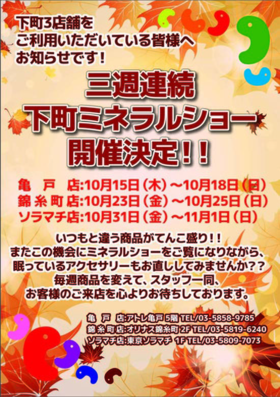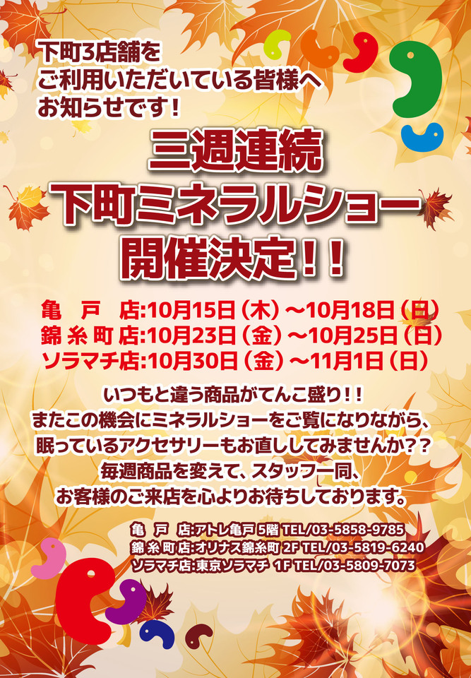 15日・16日は10:00~21:00まで店内販売17日・18日は14:00~18:00まで7階アトレホールで販売となります。時間が異なりますのでご了承くださいませ
