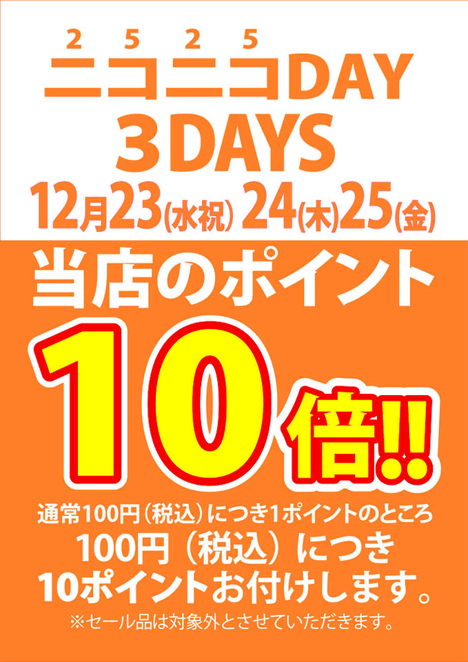 ポイント10倍開催日:12月23日(水)~25日(金)