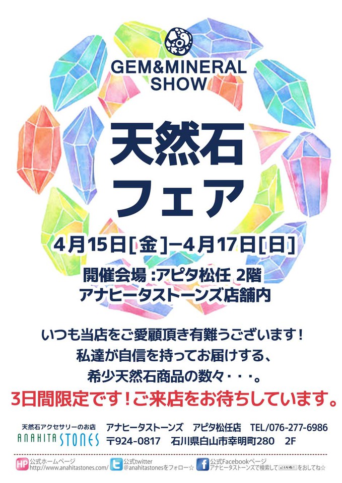 アナヒータストーンズ松任店にて、 初☆ミネラルショー開催が決定しました!