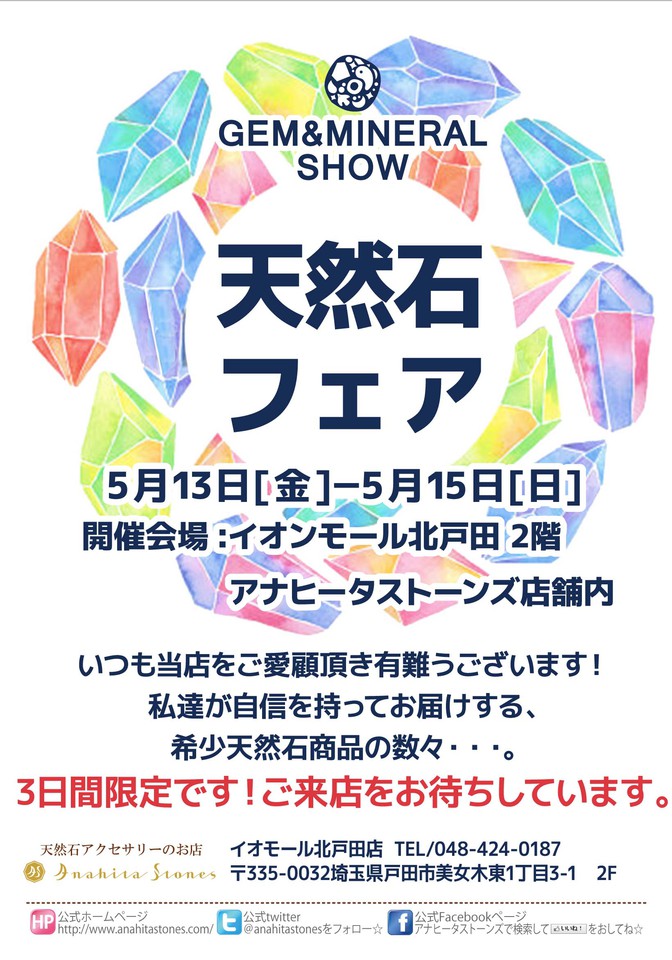 【開催会場】イオンモール北戸田 2階 アナヒータストーンズ店舗内