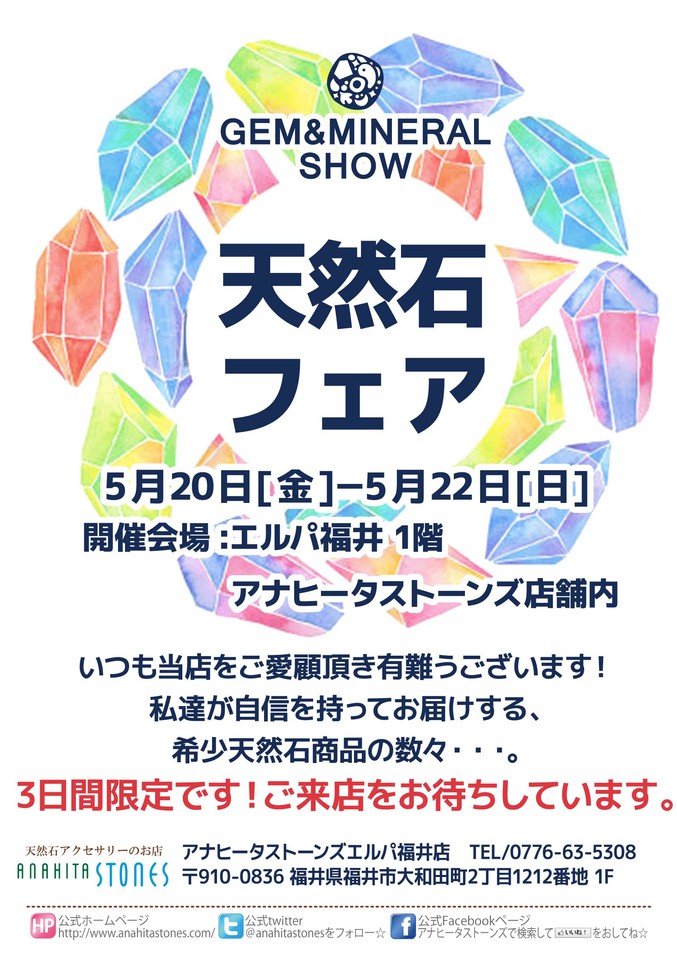 ★ミネラルショー開催!【開催会場】エルパ福井店 1階 アナヒータストーンズ店舗内【開催日】5月20日(金)~5月22日(日)
