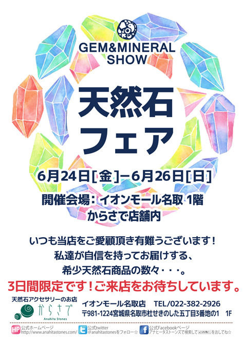 普段店頭に並ばないレアな原石、ブレスレット、ビーズなどが大集合します!!この機会を逃すと二度とないかもしれないチャンスです!皆様のご来店をスタッフ一同、心よりお待ち申し上げます。