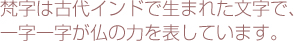 梵字は、その意味合いや伝承などに加え、文字の形自体がかっこよく高い人気があります。